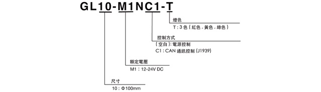 | GL10-M1NC1-T | 12V-24V DC | 三色 (紅色,黃色, 綠色) |