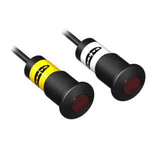 微型光電感測器是很小很薄, 適合使用於狹小空間。對照式感測距離可達4公尺. 尺寸範圍從12x16x15mm 到 26x9x16mm