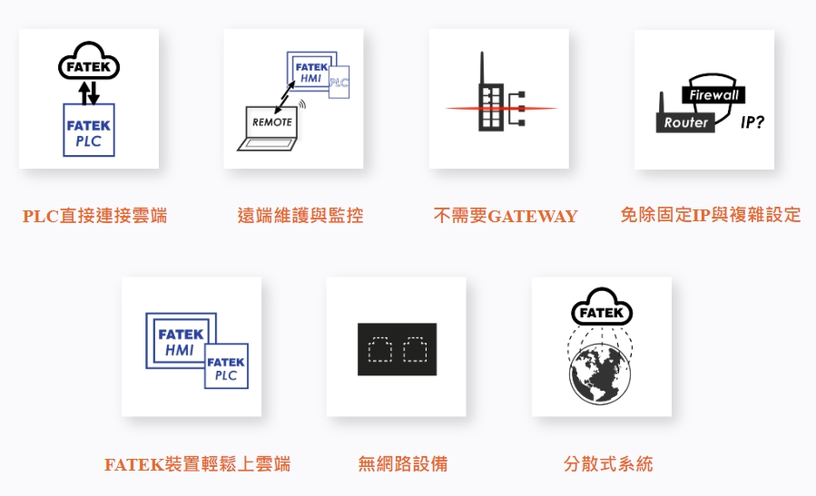 FATEK PLC 可直接連接雲端,輕鬆達成遠端監控的需求,完全不需透過HMI或物聯網閘道器,大幅減少硬體成本 (FATEK HMI 也可直接連接雲端)