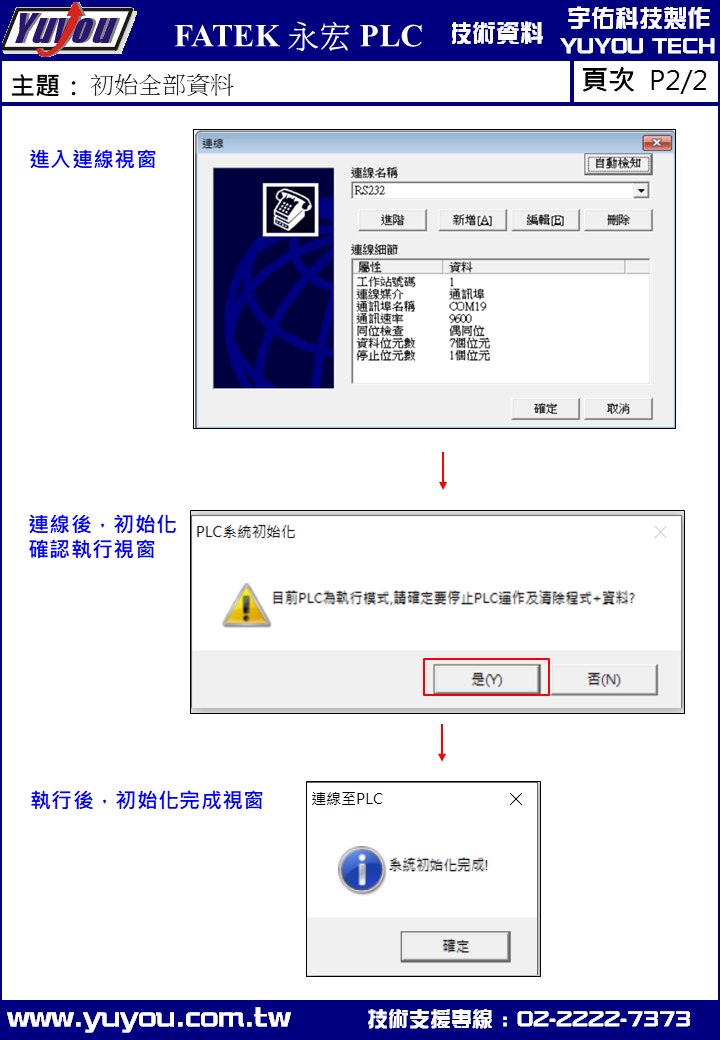 說明 : 當PLC有密碼,而無法進入連線,透過初始化功能,將PLC清空還原。