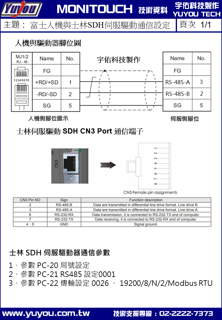 富士V8/V9/TS人機介面與士林電機SDH伺服驅動器通訊接線設定