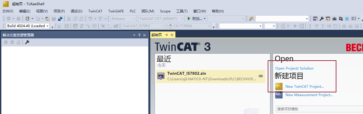 創建一個專案。 雙擊TwinCAT軟體。