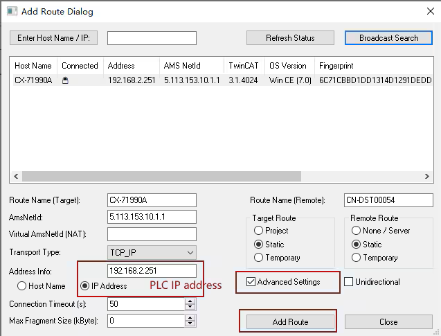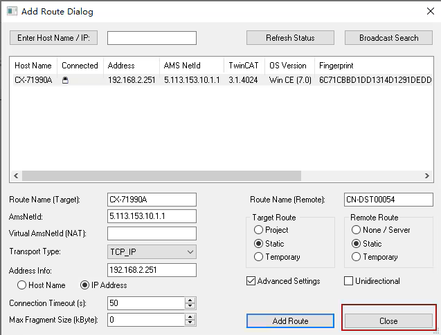 點擊“Add Route”按鈕