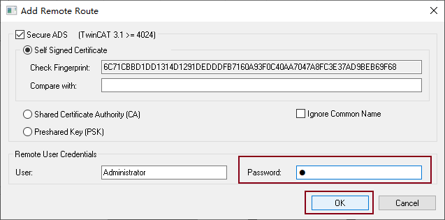 輸入密碼,然後按一下「OK」按鈕