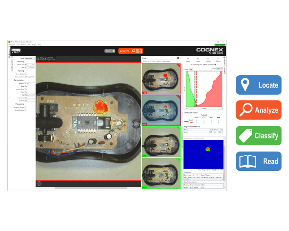 特別是配備 Cognex Deep Learning 工具的康耐視機器視覺系統,在從晶圓到製成 PCB (印刷電路板) 的每個步驟,不僅可以改善矽晶圓對位、能準確追蹤晶圓與晶片,還可以探測和分類樣態繁多的缺陷。只要投入最少的資金成本,便能在半導體供應鏈的每個步驟看到改善。